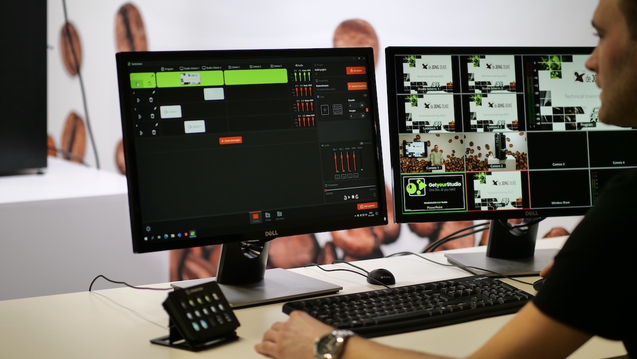 Yes — and that's precisely the point. GetyourStudio is designed for organisations without an AV department, as well as for staff with no technical background whatsoever. Whether it's a communications professional, an HR manager, or a presenter with no camera experience: with StudioAssist and the OneTouch control panel, one person effortlessly runs the entire studio. All the technology — camera control, audio, switching, streaming — is automated in the background. After the handover training, your team produces independently at broadcast level from day one.