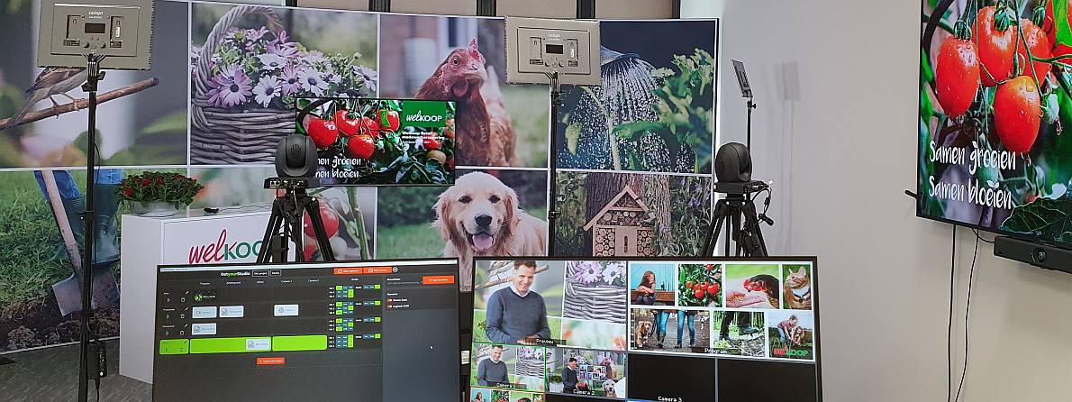 Agripers verfügt über ein komplettes Multikamera-Studio von GetyourStudio in Zwolle und Den Bosch. Agripers nutzt das Studio unter anderem für Talkshow-Settings und Webinare.